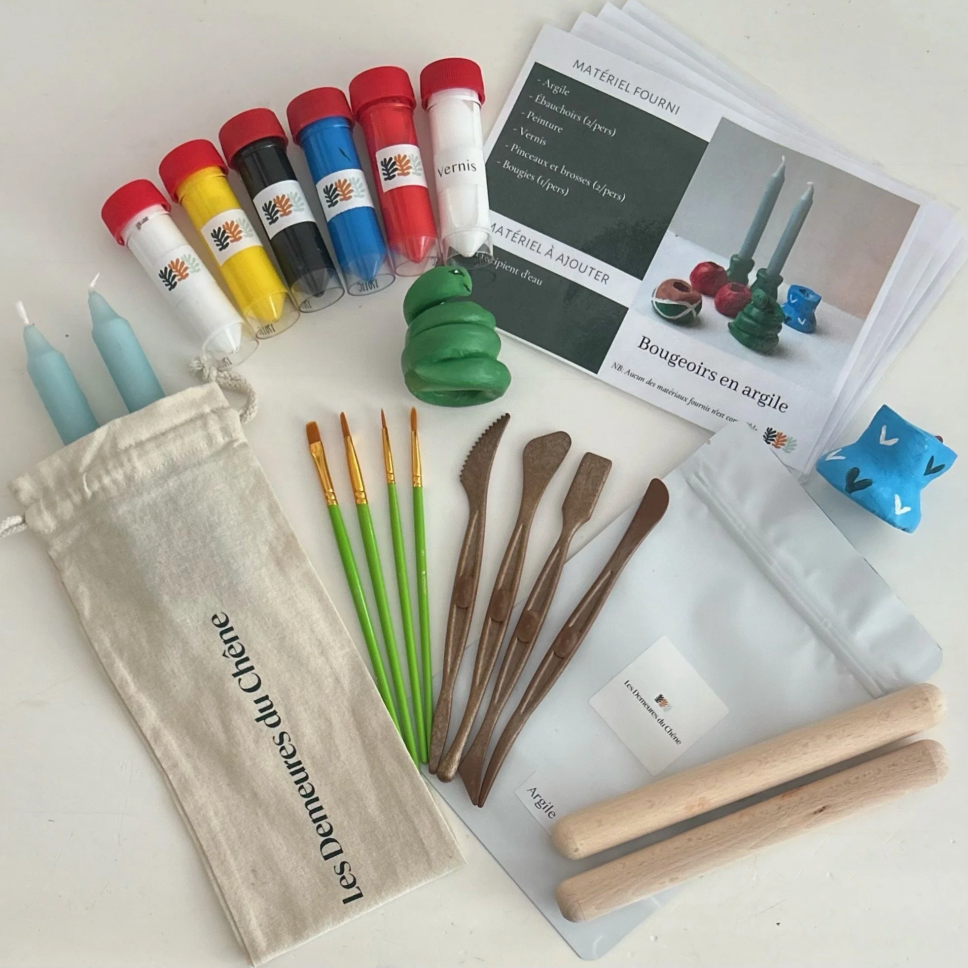 Pour vous aider, trouvez dans votre boxe un guide explicatif détaillant chaque étape de réalisation de l’activité (exemple ci-dessus pour la fabrication de bougeoirs en argile pour un particulier)